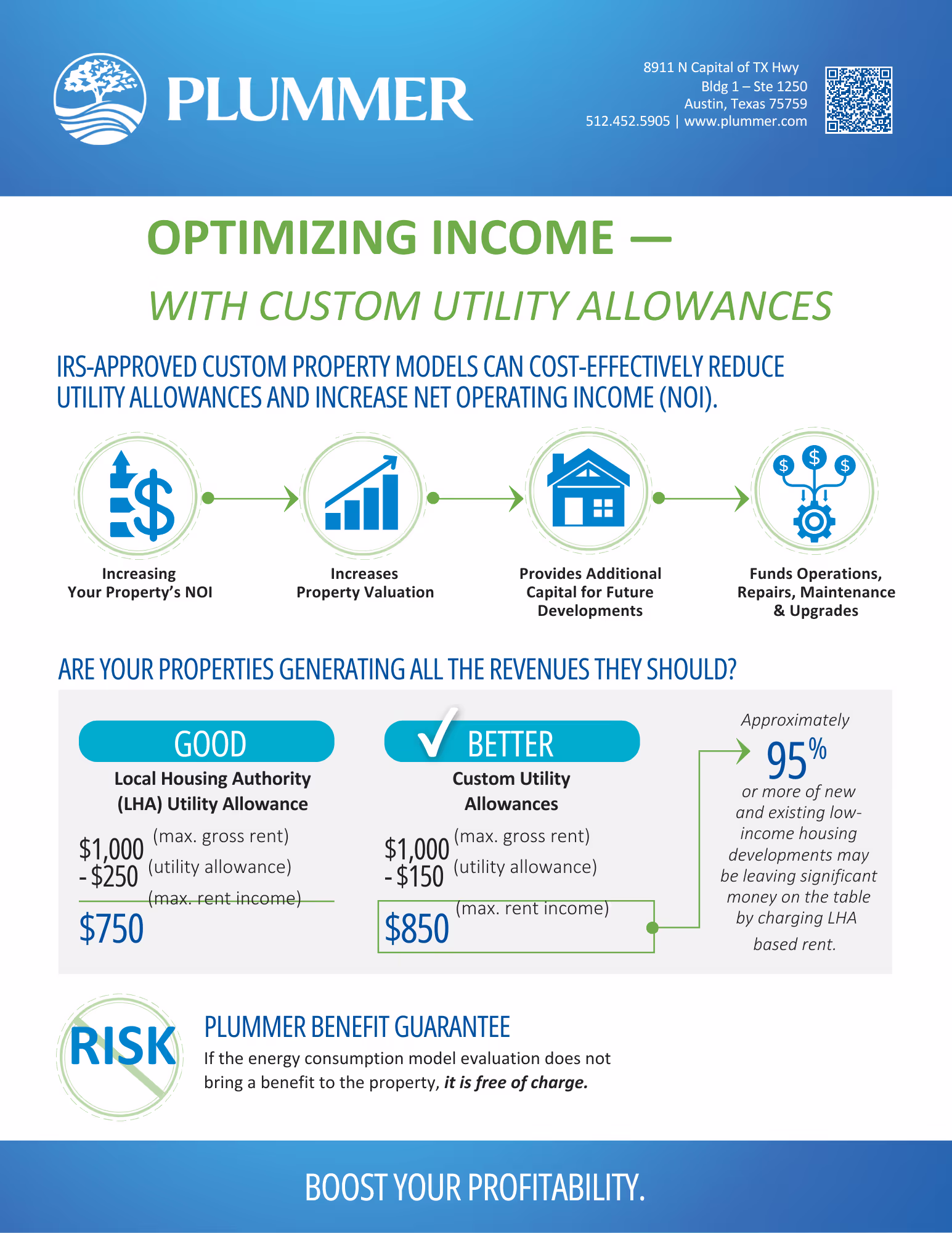 Our team conducts custom utility allowance modeling for multifamily affordable housing developments across the United States. Developers and managers of these properties have the option of providing actual consumption data or conducting energy consumption modeling in lieu of adopting local housing utility allowances. In cases where the actual consumption or the modeled consumption is lower than the published housing utility allowance, the developer or management company can increase its profit and recover money invested in water and energy efficiency upgrades. The cost of conducting a water or energy consumption model can generally be recovered in two months or less. Better yet, if the model we create for you does not make economic sense by being lower the local published housing allowance, or if the model is not approved by the regulating state agency, there is no charge. It’s as simple as that!